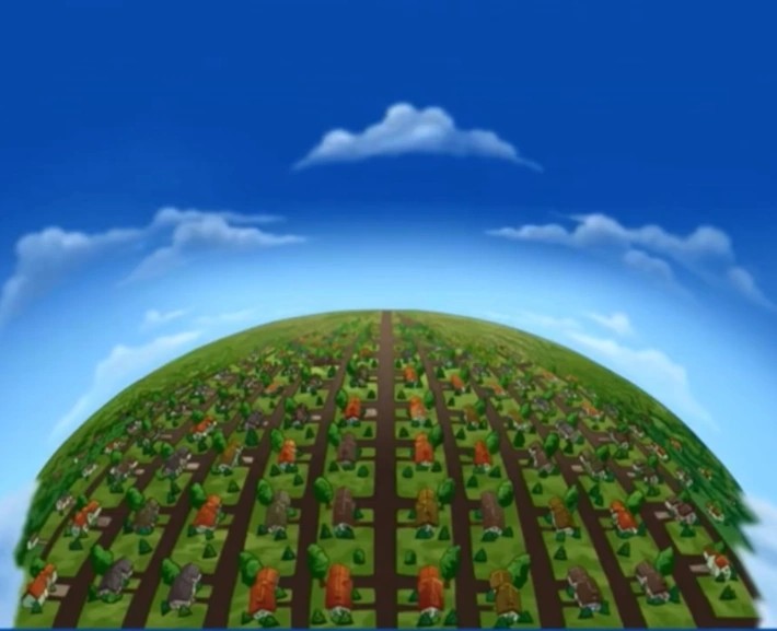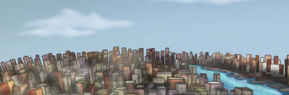 The layout of the city is unknown, but in numerous episodes, it is shown to be a massive city, consisting of a large number of people. It appears to be situated near a large river.