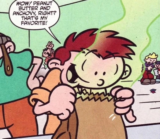 - "Wow! Peanut butter and anchovy, right? That's my favorite!"