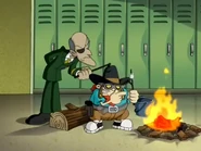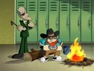 The episode begins with Hoagie (Numbuh 2), dressed in cowboy attire, roasting marshmallows over a campfire. He narrates about the hardships of his task of delivering passed notes to students, though he is more than glad to do it. Principal Sauerbraten however interjects to disrupt Hoagie’s little fantasy, revealing that his campfire was set up in the middle of the school hallway. Sauerbraten threatens Hoagie with detention, to which he extinguishes the fire and goes on his way via motorized toy horse he calls Old Rickety.