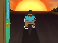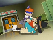 In the cafeteria, Hoagie goes up to one of the girls’ tables, only to realize he doesn’t even have the note. Runt, having come to, gives Hoagie the note; his reason for chasing him was to tell him he left the note in President Eggleston’s office. Hoagie confidently gives the note to Muffy Jenkins and walks off into the sunset, reveling in a job well-done.