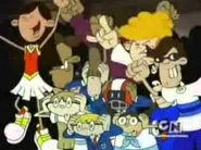 In the end credits, The Upper Crust perform a song in Numbuh 4's room on his wrestling bed; therefore, Numbuh 4 dances and 'rocks on' to it. At the end, Numbuh 1 ferociously yells, "KEEP IT DOWN UP THERE! I'm trying to sleep..." at either Numbuh 4 or The Upper Crust or both to lower their voices due to the fact that he was trying to sleep. Suddenly, Numbuh 4's legs comes crashing through the wood floor.