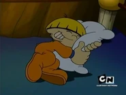 - Near the beginning of the episode, Numbuh 4 is seen dreaming that Numbuh 3 tells him that she likes him and kissing his pillow in his sleep. He starts to say (still asleep) "You know how I feel... I think you're really-" only to be scared awake by the real Numbuh 3 shouting at him, making him blush.