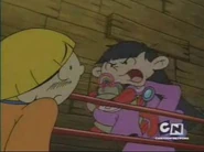 - Numbuh 3 yells at Numbuh 4 from outside of his boxing ring, even though there is no platform outside of the ropes.
