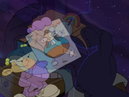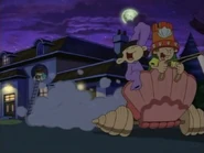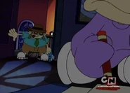 - The placement of the Spankenstine Monster outside of Balooka's Grocery relative to the doors it destroyed changes between scenes without actually moving.